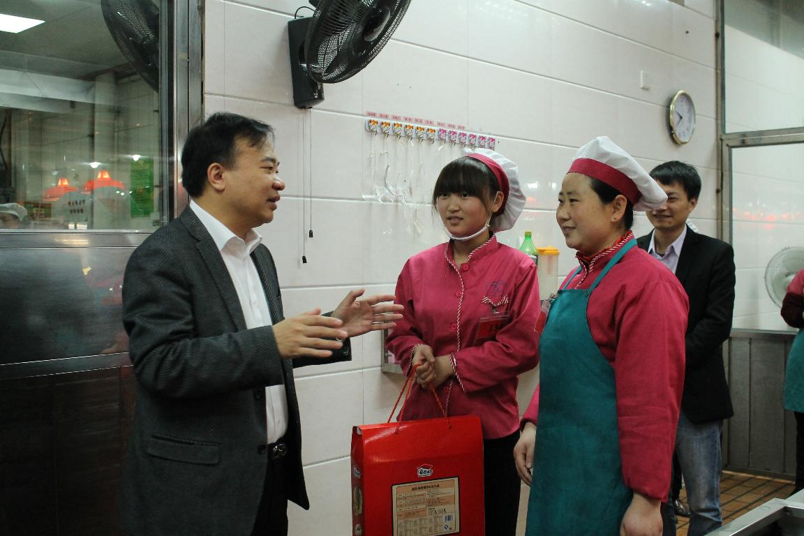 在保卫处监控指挥中心,张彦仔细查看了监控室设备,详细了解假期校园安全工作的部署情况,并叮嘱值班人员要轮流值班,劳逸结合,“既要平平安安过年,也要高高兴兴过年”。在芙蓉餐厅一楼,张彦与正在紧张准备年夜饭的食堂工作人员一一握手拜年,听取他们关于年夜饭准备情况的汇报,并向他们表示感谢和祝福。
