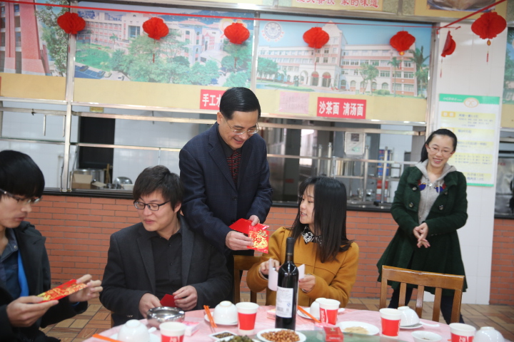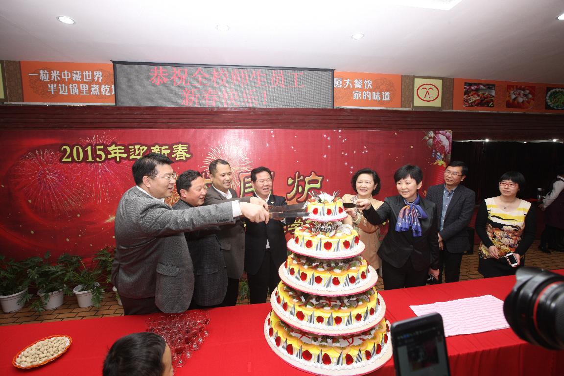 当天下午四时,百余桌年夜饭在思明校区、翔安校区同时开席,其中,翔安校区竞丰餐厅有40多桌,思明校区芙蓉餐厅有近60桌。校党委书记张彦、校长朱崇实,分别带队在两个校区与留校学生同吃年夜饭,共迎新年。校党委副书记、纪委书记赖虹凯,党委副书记林东伟,副校长詹心丽,校长助理李初环分别参加了两个校区的围炉活动。