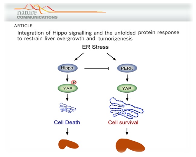 2月19日,细胞信号网络协同创新中心-厦大生科院周大旺教授课题组在Nature子刊《Nature Communications》上在线发表了题为“Integration of Hippo signaling and the unfolded protein response to restrain liver overgrowth and tumorigenesis”的研究论文,揭开了肝脏大小调控的神秘面纱-内质网的大小决定肝脏尺寸。