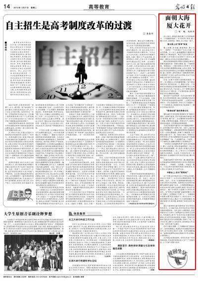 (原文载于2015年01月27日《光明日报》14版教育周刊“校园生活”栏目)