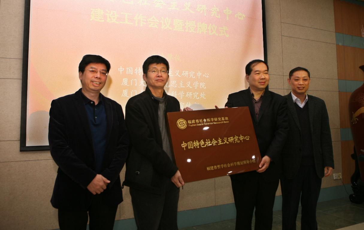 厦门大学社科处副处长林木顺、福建省社科规划办主任陈飞、厦门大学原校党委书记、经济学院吴宣恭教授、厦门大学原宣传部副部长、哲学系教授洪成得、厦门市委宣传部理论处处长苏秋华、宁德市委宣传部理论科科长林开锋、厦门大学社科处处长陈武元、华中师范大学科学社会主义所所长牟成文教授、厦门大学公共事务学院高和荣教授依次发言,对中国特色社会主义研究中心的基地建设提出宝贵而中肯的意见。