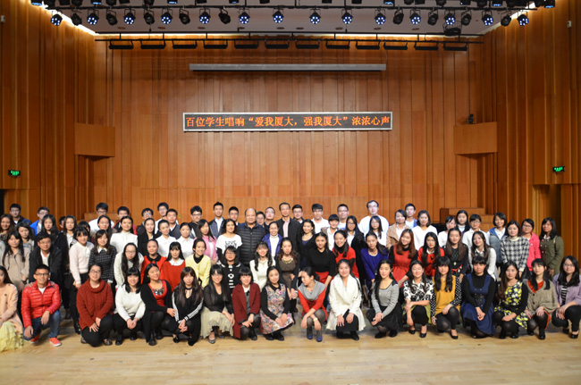 在朗诵中,音乐会拉开了序幕。诵词讲述了习近平总书记与厦大的过往和如今对厦大寄望,表现厦大学子自强不息、止于至善的精神。接着,由全校各院系一百多位博士生、硕士生、本科生先后合唱了《厦大校歌》、《铃儿响叮当》。然后,音乐会依次进行了以下节目:双钢琴八手联弹《古诺圆舞曲》、女生小组唱《雪绒花》、民乐合奏《三寸天堂》、女生二重唱《故乡》、双钢琴《帕格尼尼主题变奏曲》、民乐合奏《睡莲》、双钢琴八手联弹《邀舞》、女高音独唱《哈萨克圆舞曲》、古琴独奏《湘江怨》、双钢琴《巴西女郎》、表演唱《那些年歌曲》(串烧了《让我们荡起双桨》、《鼓浪屿之波》、《同桌的你》等歌曲)、厦大校友波兰人阿厦的女高音独唱《Think of Me》、吉他弹唱《鸿雁》、男女生二重唱《紫藤花》。