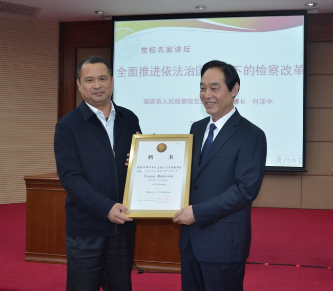 12月9日,福建省人民检察院党组书记、检察长何泽中应邀做客我校党校名家讲坛,在克立楼报告厅为我校师生作“在全面推进依法治国背景下的检察改革”的主题讲座。
