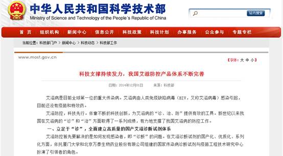 今年12月1日是第27个“世界艾滋病日”。当天,科技部网站以《科技支撑持续发力,我国艾滋防控产品体系不断完善》为题,介绍我校在为国家全面建立高质量的国产艾滋诊断试剂体系方面所做的努力。报道指出,在艾滋诊断试剂的国产化、优质化、系列化方面,依托厦门大学和北京万泰生物药业股份有限公司组建的国家传染病诊断试剂与疫苗工程技术研究中心扮演了引领者的角色。