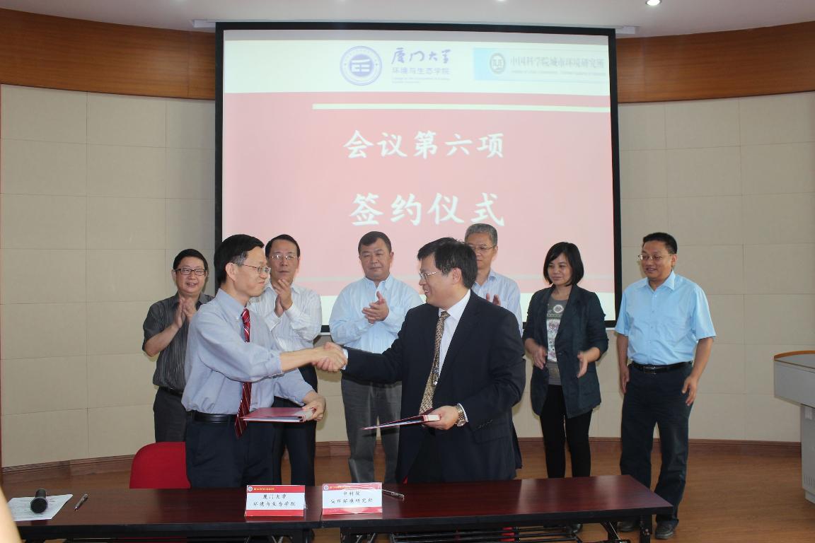 仪式最后,邬大光为在场城环所导师们颁发了兼职教授聘书。李庆顺与朱永官在“厦门大学环境与生态学院与中科院城环所签约仪式”中作为代表签署了有关文件。