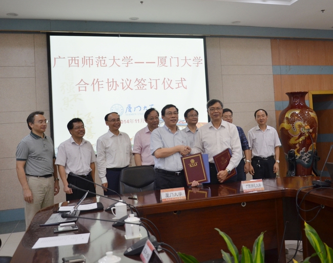 11月2日上午,我校“两岸关系和平发展协同创新中心”与广西师范大学协同合作协议签订仪式在颂恩楼215会议室举行。我校党委副书记、副校长、“两岸关系和平发展协同创新中心”主任李建发,广西师范大学副校长钟瑞添代表双方签订协同合作协议。我校社科处、台湾研究院以及广西师范大学社科处、桂台合作研究所、经济管理学院有关负责人出席会议。