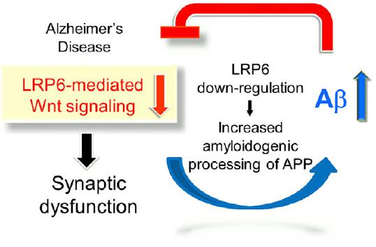 课题组研究发现,小鼠前脑神经元中LRP6的缺失足以导致年龄依赖性的神经突触丢失和记忆障碍。在AD小鼠模型的神经元中LRP6缺乏会加剧Aβ淀粉样斑的形成和认知功能障碍。此外,LRP6介导的Wnt信号通路在AD病人死后的大脑中是降低的,并且与Aβ的水平呈负相关。该研究结果建立了一个重要的机制,即:LRP6介导的Wnt信号传导降低、突触功能障碍以及Aβ水平升高会协同加速AD的发病进程。该研究也为靶向LRP6介导的Wnt信号通路作为AD治疗方案的可行性提供了重要的理论依据。