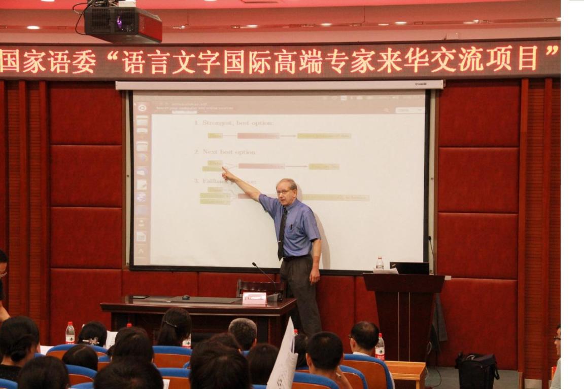 9月16日至21日,美国艺术与科学学院院士,美国科学促进协会语言学及语言科学Z区主席,富布赖特高级奖语言学评议委员会主席,芝加哥大学语言学系与计算机系杰出教授John Anton Goldsmith来我校进行学术交流。2014年度“国家语委语言文字国际高端专家来华交流项目”立项邀请的专家全国仅四位,Goldsmith教授是其中之一。厦门大学国家语言资源监测与研究教育教材中心具体邀请和承办了此项活动。