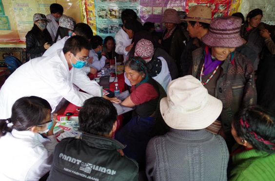 这个拥有旖旎风光,特色后藏生活的村落,一早打破了固有的寂静,300余名村民闻讯而来,纷纷在义诊地点排队,等候咨询就诊。村民委员会主任的儿女主动要求为义诊人员承担翻译工作。这群90后义诊医护人员一点都不含糊,他们把脉听诊,免费为村民量血压,仔细询问病史,对患者进行细致的医疗检查后,开具处方并将药物交到患者手中,详细交待每种药物的用法用量及注意事项,并嘱咐他们按时服药。
