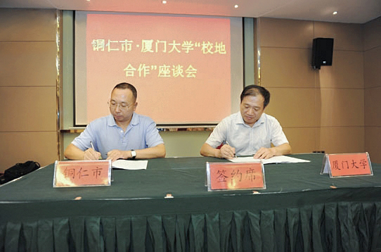 刘奇凡表示,铜仁市是贵州省的东南门户,人文历史绵长厚重,自然资源丰腴富饶,旅游资源独特多姿,经济发展势头强劲,正着力打造黔东南工业聚集区、文化旅游创新区和乌江经济走廊。厦门大学是人才的高地、科技的高地,也是开放的高地,铜仁市的发展腾飞迫切需要厦门大学这样的合作伙伴。希望以协议签署为契机,发挥厦门大学的优势,推动铜仁市更好更快发展。