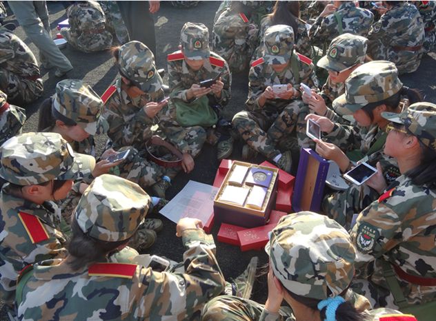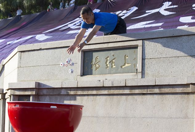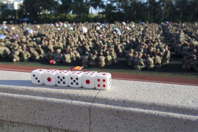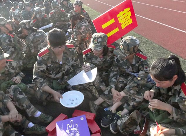现场所有军训学员以十人为一组,按照营、连、排逐次分成若干个小组,一声令下后竞先开博。骰子在大海碗里铿铿作响,唱号声、欢呼声、惊叹声此起彼伏。尽管大部分同学对博饼这一闽南特色风俗并不熟悉,对博饼规则也不了解,但都充满热情,抢投骰子,骰子的跳跃声清脆悦耳,每一次“开奖”,同学们都争着对照博饼的规则,宣布自己的“官阶”。