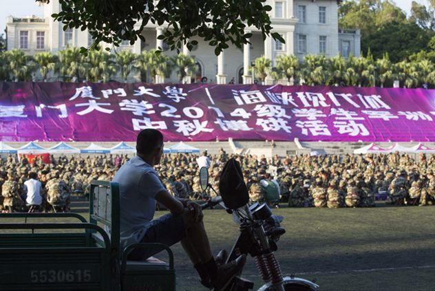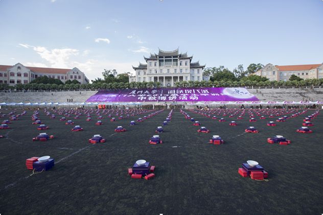 昔年八月十五夜,俯首填卷案堂边。今年八月十五夜,千人博饼建南前。8日下午17:00,逾4500名军训学员齐聚上弦场,一场别开生面,规模宏大的中秋博饼大会拉开序幕。今年军训期间,正逢中秋佳节,我校组织师生一起博饼,体验闽南传统民俗的喜乐,让各地“今在他乡”的学子们,以特别的形式团聚在一起,共度中秋。