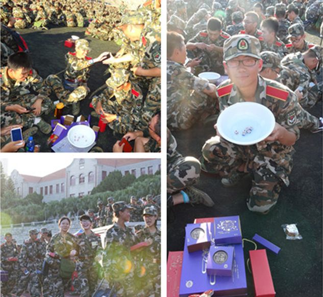 本次博饼活动由厦大校友企业海峡现代城全程赞助,博饼游戏的奖品有大大小小各式各样的美味月饼,组织方还贴心地在月饼的包装上标注对应奖项,方便同学们博奖后自行领取。如此贴心的游戏奖品让同学们惊呼太过丰厚,七营的黄同学说,这是他今年吃到的第一块月饼,也是这几年来月饼吃最多的一次,博饼赢来的月饼,吃着格外香甜。不少军训小组自行改良了奖品机制,发挥互助友爱精神,当有人博到大奖,便现场拆开包装,将月饼切成小块,每人一块,让每位同学都能分享到不同月饼的滋味。