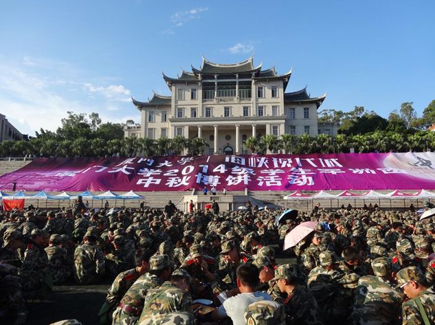 千人博饼活动是厦门大学的一项军训“传统节目”,当军训期间恰逢中秋佳节,厦大都会举办全体新生共同博饼这项活动,让出门在外的学子们感受到厦大这一大家庭的热闹与温暖。而在2010年,学生军训在漳州校区开展,厦大更与嘉庚学院一起,举办规模盛大的万人博饼活动,