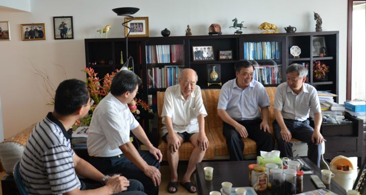 田昭武对陈修茂一行的问候表示感谢,他介绍,自己退休后,依然心系学科应用与环境保护事业,最近刚刚完成了一项有关电动汽车的研究报告,准备送呈国务院有关部门,希望对近几年困扰我国的大气污染治理问题有所帮助。在谈及青年教育时,他希望教育要注重持续性与经常性,尤其要注重历史教育,注重青年一代对历史的传承性。他以抗战胜利后自己在厦大求学时的所见所感,寄语青年要心怀祖国,牢记民族历史、树立对历史的责任感,才能志存高远,为社会为国家做出更大的贡献。