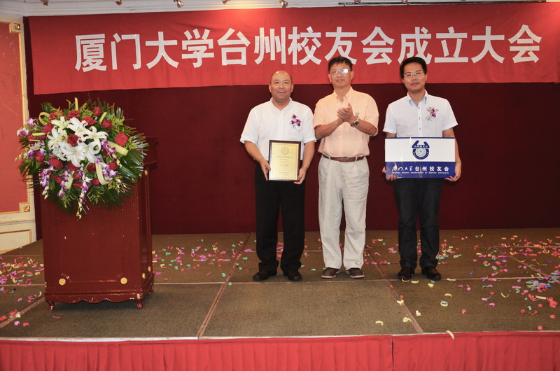 9月6日下午,厦门大学浙江各地校友会联席会议暨台州校友会成立大会在浙江省台州市举行。近百名台州校友以及来自杭州、宁波、温州等浙江各地校友会代表欢聚一堂,共同见证这一温馨而美好的感人时刻。我校校友总会副理事长潘世墨,校长助理谭绍滨,校友总会秘书长曾国斌,嘉庚学院常务副书记、副院长鲁同安,经济学院国贸系主任郑甘澍,经济学科同学会秘书长吴国荣以及来自北京、上海、新疆、厦门等地校友会代表到会祝贺,全球14个校友会为台州校友会的成立发去贺信。