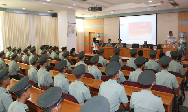 8月27日,承担我校2014级本科生军训任务的部队官兵正式入驻学校,当天下午,学校举行简短热烈的欢迎仪式,欢迎全体承训官兵。