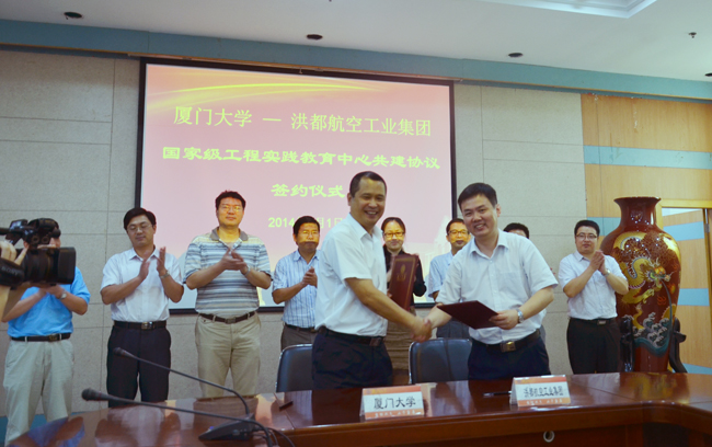 徐新生说,长期以来,厦门大学为洪都航空各个关键领域输送了大量人才,要代表企业表示感谢。他希望双方能够按照协议要求,把工程实践教育中心真正做好,达到“双赢”的目的,希望双方今后能够在课题研究、联合攻关等方面开展更为深入的合作。