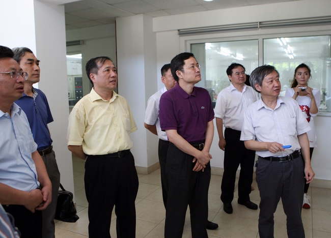 6月28日下午,科技部副部长李萌一行来校调研,实地考察了石墨烯工业技术研究院、材料学院,了解了我校科研创新情况。我校党委书记杨振斌,党委副书记、副校长李建发陪同调研。