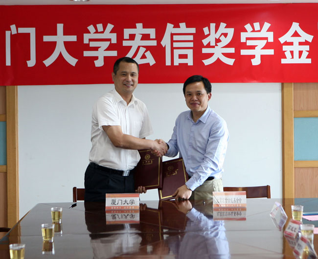 6月12日下午,“宏信奖学金”签约仪式在我校举行,校党委副书记林东伟,北京宏信公益基金会代表、远东宏信有限公司人力资源部总监陶祁分别讲话并代表双方签约。