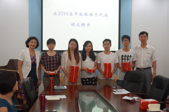 随后,詹副校长向2014届年级联络员代表颁发了聘书。