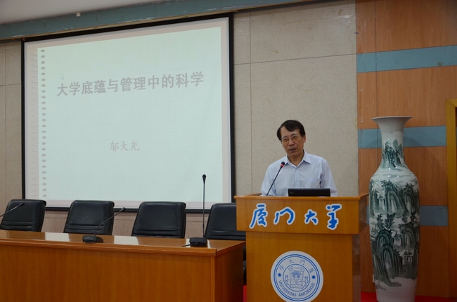 副校长邬大光在开班式上作了题为《大学底蕴与管理中的科学》的专题报告。他从厦大内迁长汀办学前萨本栋校长的“最后一课”说起,从物质层面、精神层面和改革层面详细解读了何谓“一流大学”,深入剖析了大学文化底蕴的涵义,分析了大学管理的现状,并就如何加强人才培养,建设一流大学进行了深入探讨。邬大光认为,大学的发展不仅要依靠经费,同时还需要依靠大学的文化和底蕴来支撑。他指出,大学的管理要勇于总结与创新,要从过往经验中总结科学规律,创新手段,实现大学管理水平的进一步提升。