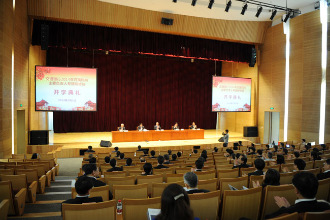 5月5日上午,交通银行2014年直属机构主要负责人专题研修班开学典礼在我校科学艺术中心三楼报告厅举行。交通银行董事长牛锡明、我校校长朱崇实、交通银行行长彭纯,交通银行监事长宋曙光,台湾金融研训院董事长许嘉栋,交通银行领导班子其他成员出席开学典礼。开班典礼由彭纯主持。