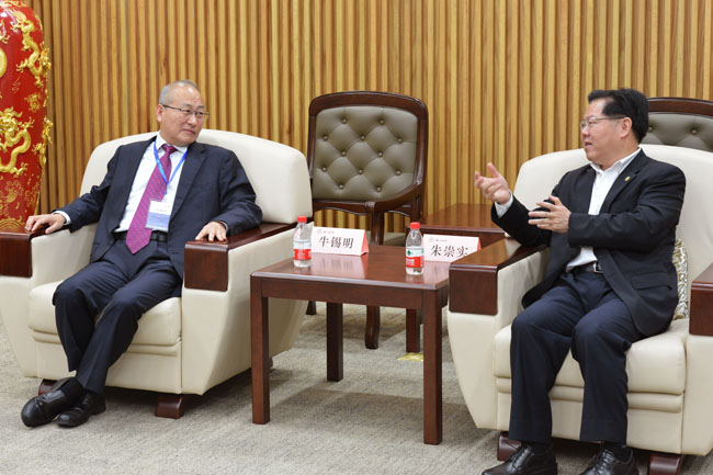 开学典礼前,朱崇实亲切会见了牛锡明、彭纯、许嘉栋等嘉宾。