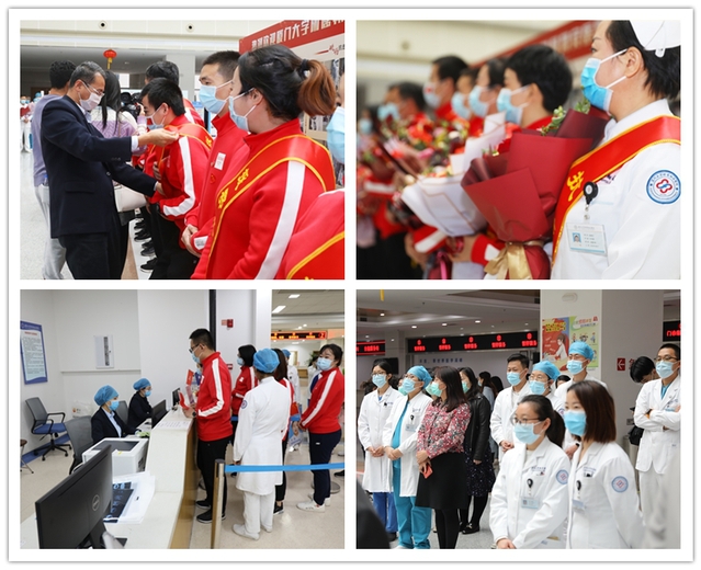 欢迎仪式伊始,赖虹凯、程明和院领导班子代表学校、区委区政府和医院为援鄂医疗队授绶带,表彰队员们用实际行动展现了厦大人、翔医人的使命担当。医院同事向援鄂、援杏林医疗队员献花致敬。