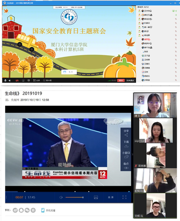 依托大学生在线平台,组织全体辅导员和学生共同观看由公共安全领域专家、中国工程院院士范维澄主讲的“总体国家安全观视角下的疫情防控”网络课程。法学院2018级本科生、校第十期马研班学员刘毅楠在观看后说道,“维护国家安全对我们来说不是遥不可及、事不关己的。在疫情期间从网络上的一言一行,到生活中的居家抗疫,都影响着国家安全。身为大学生的我们,不传谣、不信谣,提升信息辨识能力,在家学习不停步,努力提升自我......点滴小事,但汇集起来却可以为国家安全构筑一堵坚不可摧的墙”。嘉庚学院艺术设计系产品设计专业2019级学生朱佳琦说,听完公开课后,我深切的感受到我们每一个人都要坚持总体国家安全观,服从大局,做好本分,掌握科学防控知识,这也是我们新时代中国青年在应对公共卫生安全该有担当。