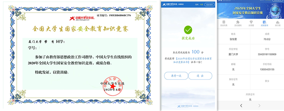 学校依托中国大学生在线平台,组织学生参加“2020年国家安全教育知识竞赛”,以网络答题方式普及国家安全教育知识。竞赛内容涵盖总体国家安全观、国家安全制度体系、国家安全法治、国家安全战略、国家安全教育等内容,活动累计吸引到上万名学生参加,在全校掀起了国家安全教育知识的学习热潮。管理学院硕士研究生张玫说:“战疫期间,大学生要以身作则,维护好自身和公众健康也是维护国家安全。”