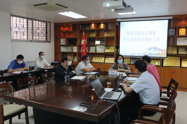 4月20日,校党委常委、副校长邓朝晖到后勤集团调研学生食堂保供稳价工作情况,后勤集团领导班子及饮食服务中心负责人出席调研会议。