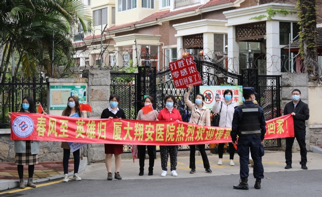 “当看到翔安医院的领导和同事们举着我们的工作照迎接,我的眼泪瞬间哗哗落下。有回到家的感觉。”马鑫说。“在武汉,市民自发排成长队挥舞送别,回到厦门,又受到如此高的礼遇,除了感谢,就是感动!我将在十四天中好好休整总结,以待‘满血复活’,投入新的工作征程。”陈先礼动情讲到。陈兰则有感而发,“感恩伟大的祖国让我们以及我们的下一代在疫情中极速成长,80和90后,这批被呵护成长的两代人,一下子勇敢地成为祖国最需要的人,开始保护全世界。”