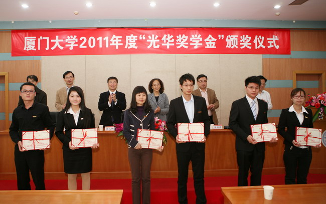 12月9日上午,厦门大学2011年度光华奖学金颁奖仪式在颂恩楼220会议室举行。48名研究生和12名本科生(其中包括3名少数民族学生)获奖。