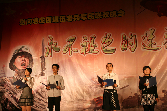 “忘不了啊!当兵的日子,她注解了你一生的光荣,记忆里青春的旗帜因此血红血红。”一首由我校四名同学深情朗诵的《送别》引发了即将退伍的老兵的共鸣,他们噙满泪水,用热烈的掌声表达感动之情。我校艺术团合唱队陈艺雨与部队官兵马松合唱的《为了谁》,热情讴歌了人民子弟兵的英勇无畏、坚强不屈。晚会最后,特邀演出的我校艺术学院林叶艳老师在一曲《好运来》后,又在经久不息的掌声中再次唱起《为了谁》,并且邀请一位普通的战士共同演唱,得到了现场观众最热烈的掌声。