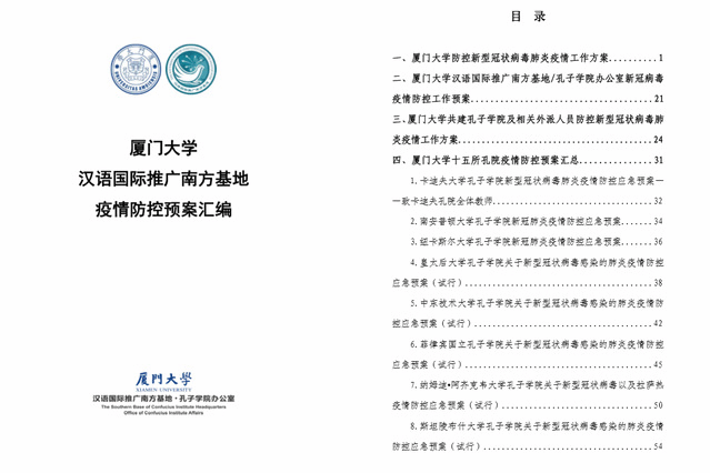 3月初,随着国际疫情发展,在副校长杨斌的指导下,汉语国际推广南方基地/孔子学院办公室进一步指导各共建孔院结合本国最新形势和政策完善此前制定的新冠肺炎疫情防控应急预案,加强防控,做到未雨绸缪,防范未然;同时,加强与共建孔院的沟通和联系,制定《厦门大学共建孔子学院及相关外派人员防控新型冠状病毒肺炎疫情工作方案》,执行“每日一报”“零报告”制度和“回国审批管理制度”,安排专门信息员对接每一位中方人员,确保人员类别全覆盖。