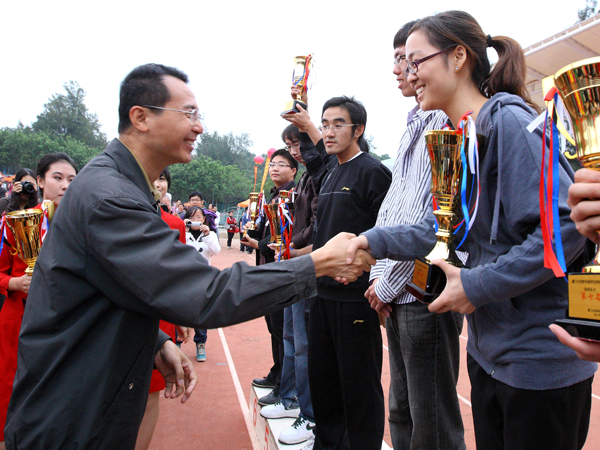 简短的入场仪式之后,相关负责人宣布了本年度体育先进学院,本届运动会各项赛事总成绩和获奖名单及获得本届校运会体育道德风尚奖获奖单位,同时还宣布了第16届教职工运动会体育道德风尚奖。