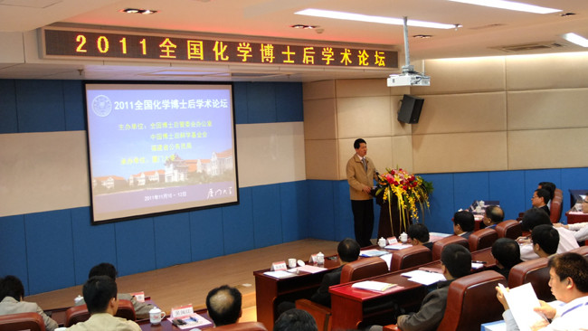 11月11日,“2011年全国化学博士后学术论坛”在我校卢嘉锡楼202室开幕。来自北京大学、清华大学、中国科学院化学研究所、中国科学院物构所等25个国内高校与研究所的专家和博士后代表共计50余人参加了本次论坛。