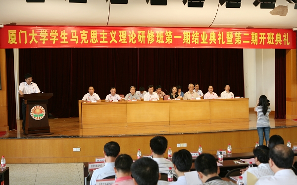 10月23日上午,我校学生马克思主义理论研修班第一期结业典礼暨第二期开班典礼在法学院报告厅举行。校党委副书记陈力文,校党委常委、组织部部长白锡能,经济学院吴宣恭教授,人文学院苏振富教授,宣传部部长王炳华,学生处处长林东伟,教务处处长谭绍滨,马克思主义学院党委书记许和山,校团委副书记(主持工作)张清榕,研究生院培养与管理办公室副主任范丽娟,学生处副处长徐跃进、郭锦星,各学院党委副书记,马克思主义理论研修班指导老师,以及第一期、第二期马克思主义理论研修班的全体学员出席典礼。宣传部副部长徐进功主持典礼。