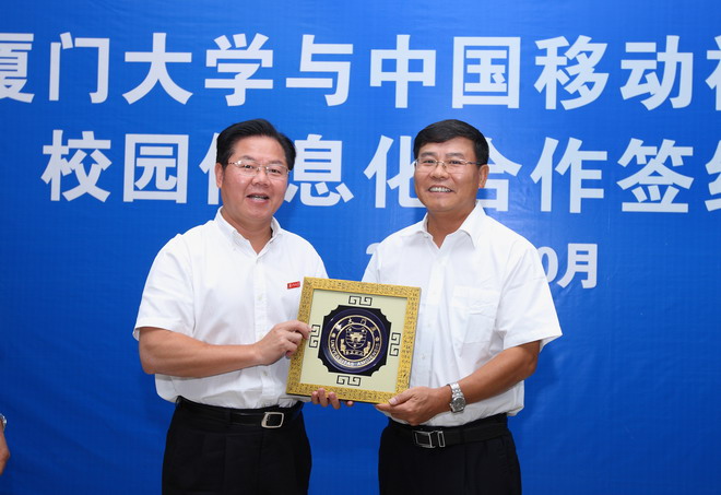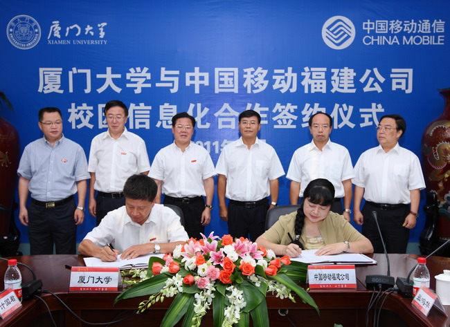 10月19日,厦门大学与中国移动福建公司校园信息化合作签约仪式在颂恩楼215会议室举行。根据协议,双方将在校园一卡通系统建设、三校区网络信息一体化建设、校园视频监控系统建设、高速无线网络覆盖、校企科技合作、人才合作培养等方面开展广泛而深入的合作。这标志着双方的合作进入了一个崭新的阶段,也预示着校园信息化建设将得到进一步提升。