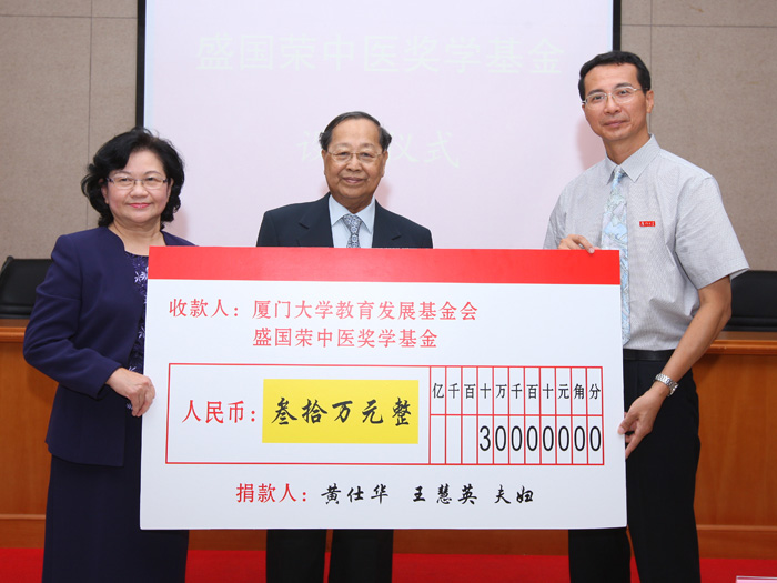 据了解,该基金由我校马来西亚校友黄仕华、王慧英夫妇捐赠30万元人民币设立,以他们的恩师、著名老中医、我校医学院中医系创始人盛国荣的名字命名。基金将作为品学兼优的中医学专业学生的专项奖学金。