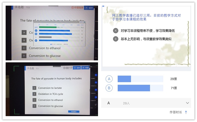 “课程利用钉钉和mooc两个平台,直播与录播相结合,老师利用各平台发布讨论题,并在直播课程中与同学积极交流,课程教学内容得到有效保障。”修读《细胞生物学》课程的2018级本科生郑毅说。李勤喜教授介绍,学院老师充分发挥不同平台的不同功用,例如,利用“雨课堂”平台进行随堂测试,运用QQ群、微信群、讨论区与学生充分互动,依托平台学习数据,分析学生学习的状态和成效,定期开展诊断性问卷调查。