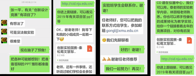 “创新设计竞赛项目有想法了吗?”在课余,微信群成为答疑社区,“实验中心”老师及时追踪学生参赛准备情况,分享科创经验,帮助联系有关竞赛指导教师,“在这特殊时期,更要想学生之所想、急学生之所急”。此外,教辅老师也加入在线学习科普实验,为今年中学生夏令营活动做充分准备……
