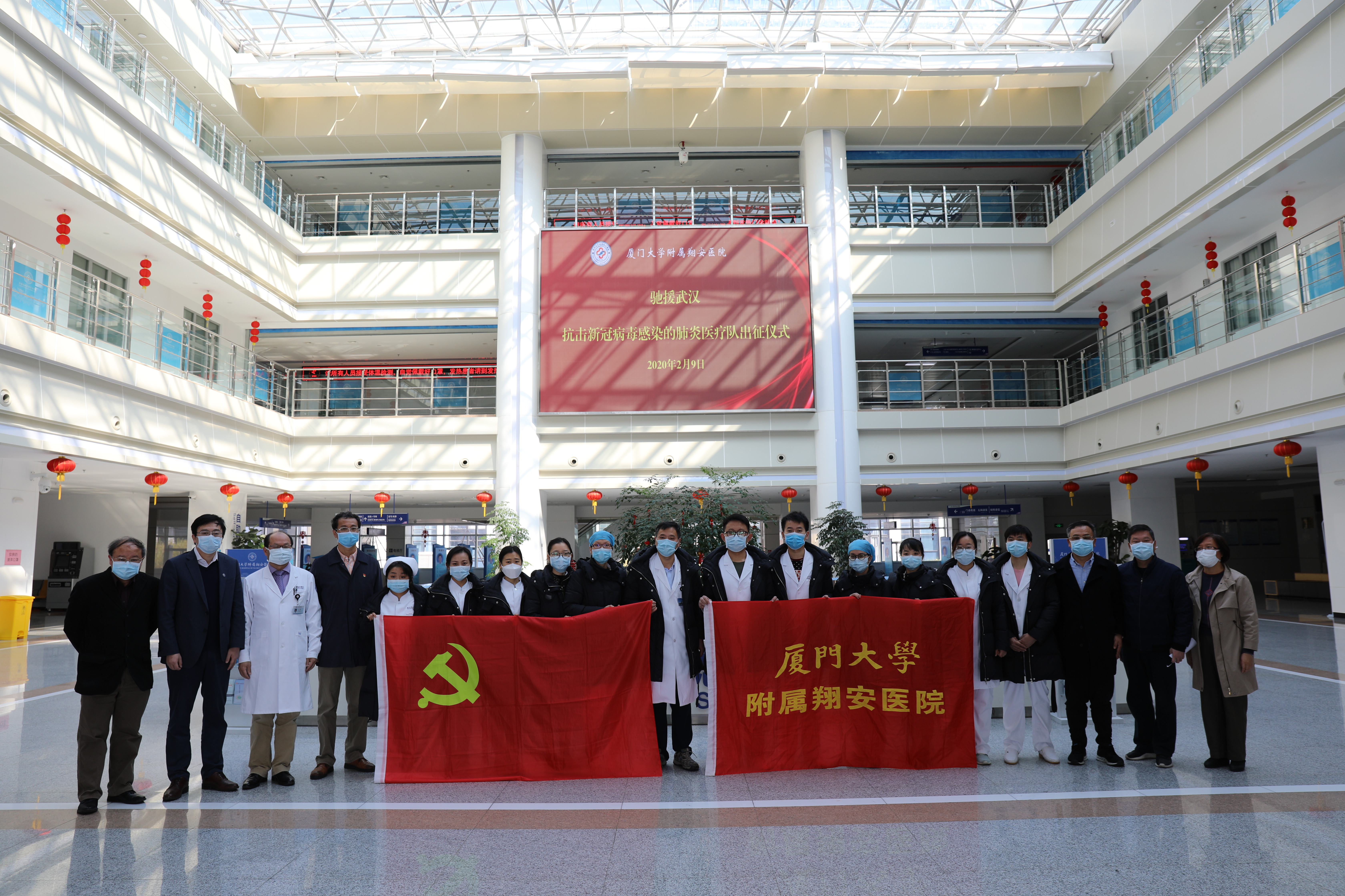 学校办公室李智勇,翔安医院党委书记吴立武、执行院长张国君、纪委书记傅万里、副院长邵晨及程继东参加出征仪式。