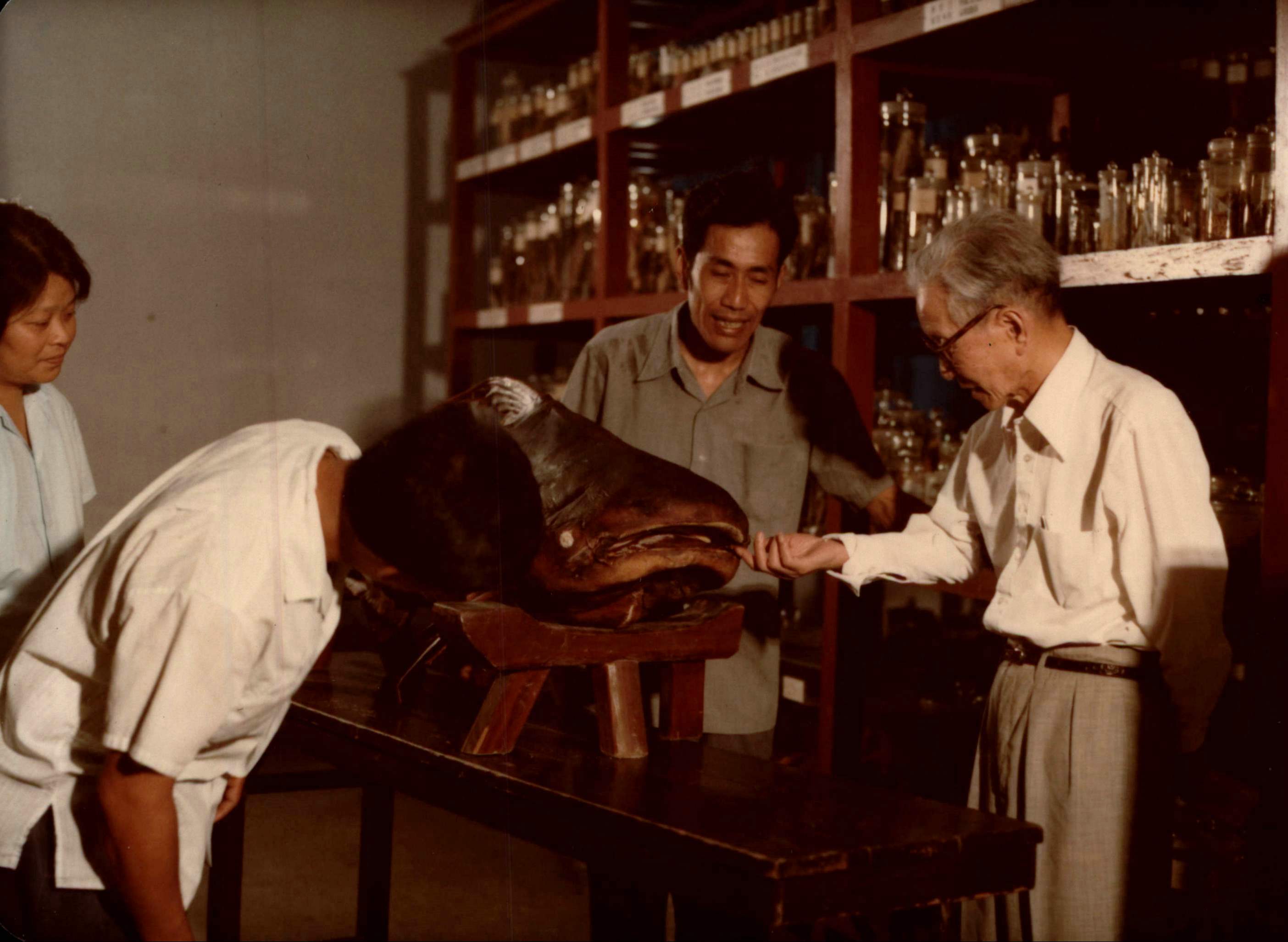 伍献文(右一)和陈宜瑜(右二)开展研究工作。(中国水生研究所供图)