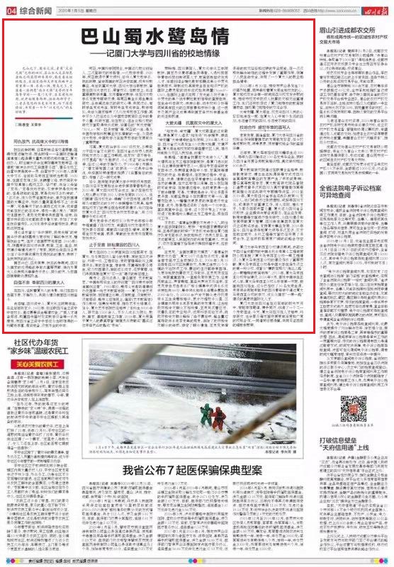 在四川,活跃着厦大人的身影。他们在四川自强不息,不懈努力,共同为建设美丽四川而奋斗。