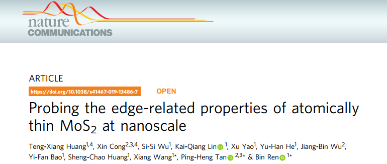 化学化工学院任斌教授课题组在层状二维材料缺陷表征方面取得进展,相关结果以“Probing the edge-related properties of atomically thin MoS2 at nanoscale”为题,于2019年12月5日发表在《自然-通讯》(Nature Communications, 2019, DOI:10.1038/s41467-019-13486-7)。