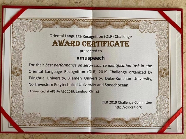 11月21日,在兰州举办的2019亚太信息与信号处理峰会(APSIPA ASC 2019)上,“东方语种识别竞赛(OLR Challenge-Oriental Language Recognition Challenge)”组织方宣布了第四届东方语种识别竞赛(OLR 2019 Challenge)的比赛结果,我校智能语音团队(xmuspeech)喜获“低资源语种识别任务”第一名,同时还获得“短语音语种识别任务”第三名和“跨信道语种识别任务”第三名的优异成绩。这是智能语音团队继2018年获得OLR短语音语种识别任务第一名后,再次获得佳绩。