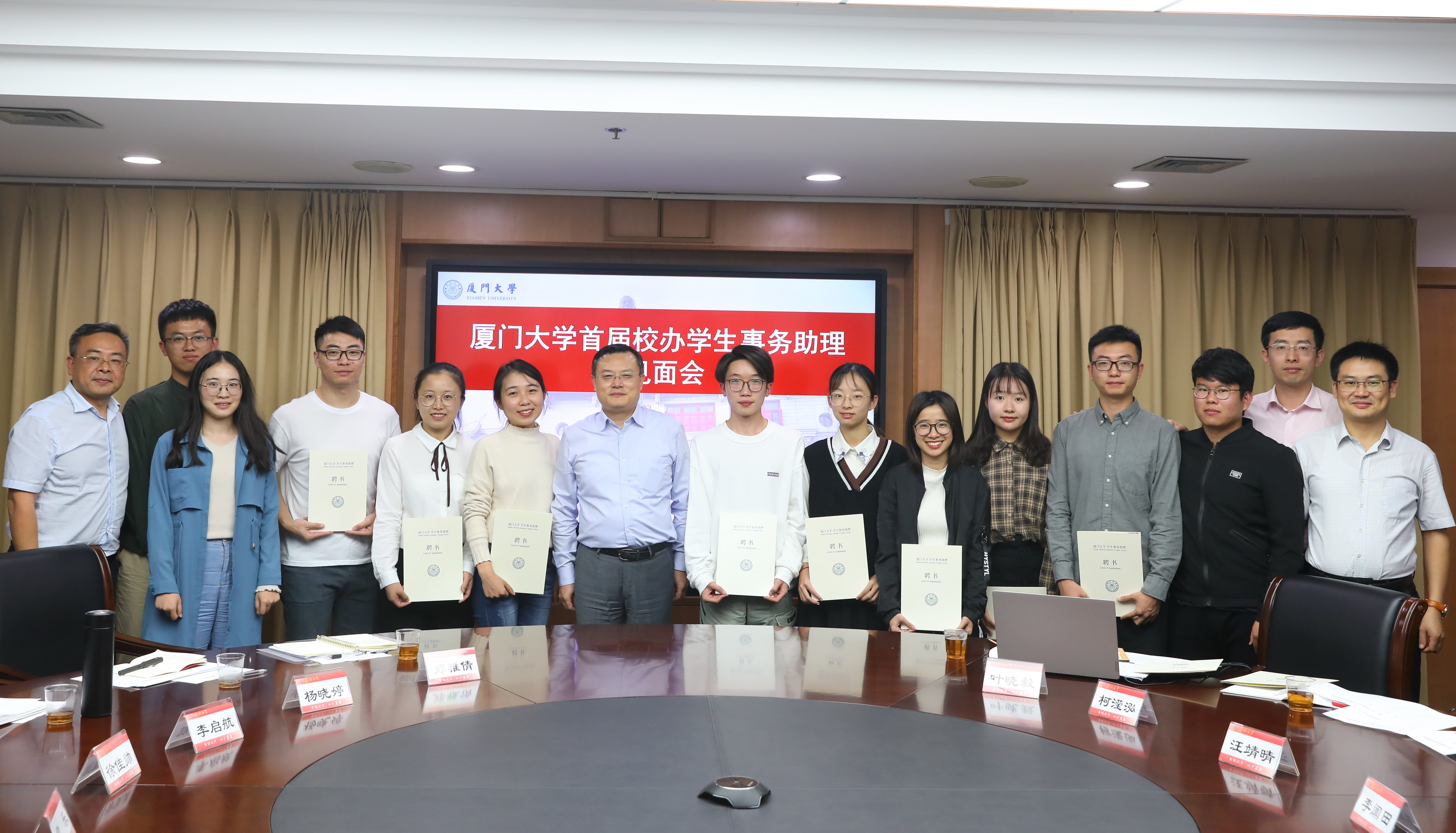 为落实全国高校思想政治工作会议和全国教育大会精神,发挥学生在办学治校中的作用,支持保障学生参与学校民主管理和民主监督,创新学生与学校沟通交流的方式,在学校领导的倡议下,2019年4月,我校启动了校办学生事务助理的选聘工作,完成了成员选拔和团队组建。首批成员包括来自思明和翔安两个校区的4位本科生和6位研究生,承担着收集学生意见、反馈学校信息、协助解决学生问题、开展专题调研、汇报交流成果、列席学校会议、宣讲学校政策等主要职责。