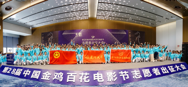 11月16日上午,第28届中国金鸡百花电影节志愿者出征大会在厦门国际会展中心举行。我校396名即将踏上服务“金鸡”征程的青年志愿者集体宣誓。中国电影家协会主席陈道明,中国电影家协会分党组书记、驻会副主席张宏,厦门市委常委、宣传部部长叶重耕、校党委副书记赖虹凯、校团委书记曾铮等出席大会。